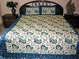 3pc Royal Blue Cotton Bedspreads Paisley Print Queen Coverlet India