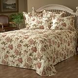 Emma cotton rich printed woven matelasse bedreads add a traditional look to any bedroom. It is woven in the classical matelasse tradition with a tonal leaf design and then overprinted with a beautiful multi colored floral pattern. The bedspread is 55-percent cotton and 45-percent polyester for easy care. Machine wash color water. Wash separately. Use mild soap and non chlorine beach if needed. Tumble dry low. Use warm iron is needed. The bedspread comes in all four standard bed sizes: twin, full, queen and king and has matching shams available speparately. Emma coves the entire bed down to the floor so no bed skirt is needed. The twn measures 81x96 inches, the full 96x110 inches, the queen 102x110 inches and the king 120x110 inches. Emma comes in three rich colors that include crimson, natural and sky. It is crafted with pride in China Read more